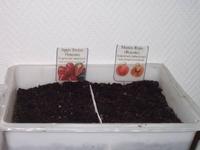 sind die ersten Keimlinge zu sehen. Bis auf Manzano Rojo (Rocoto) keimen alle